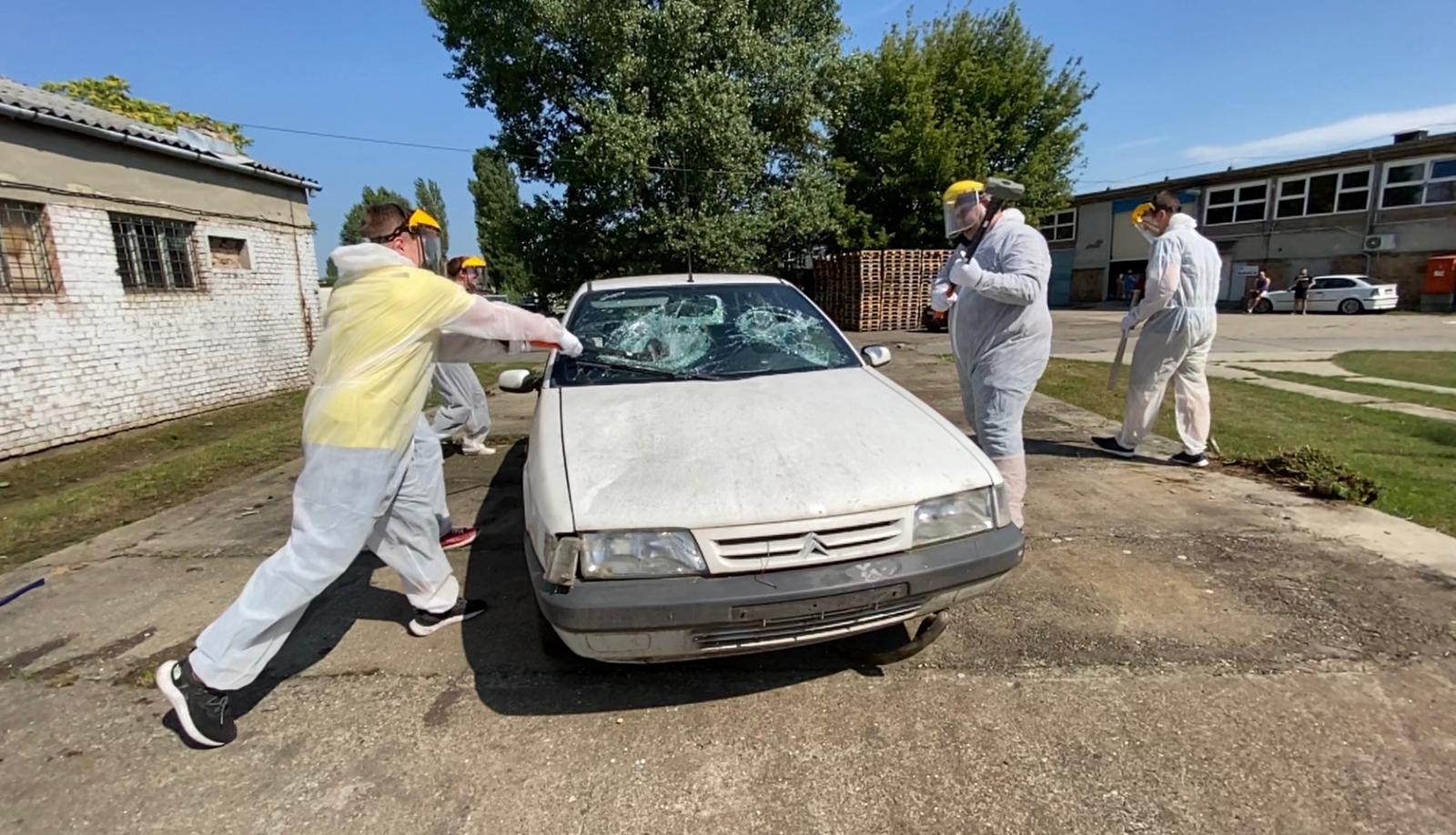 Tartalma: egy egész autó szétrombolása különböző zúzóeszközökkel!